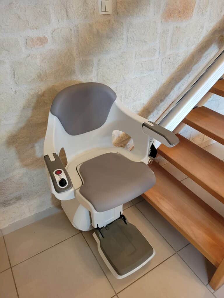 Ils fonctionnent sur batteries intégrées ce qui vous offre une tranquillité d’esprit même en cas de coupure d’électricité. Facile d’utilisation, le bouton de commande est placé sur l’accoudoir et dirige le monte-escalier vers le haut ou vers le bas. Bords sensibles et sécurité sur rail.